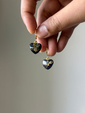 Sarso / Mustard Flower Huggie Earrings (Black) -1