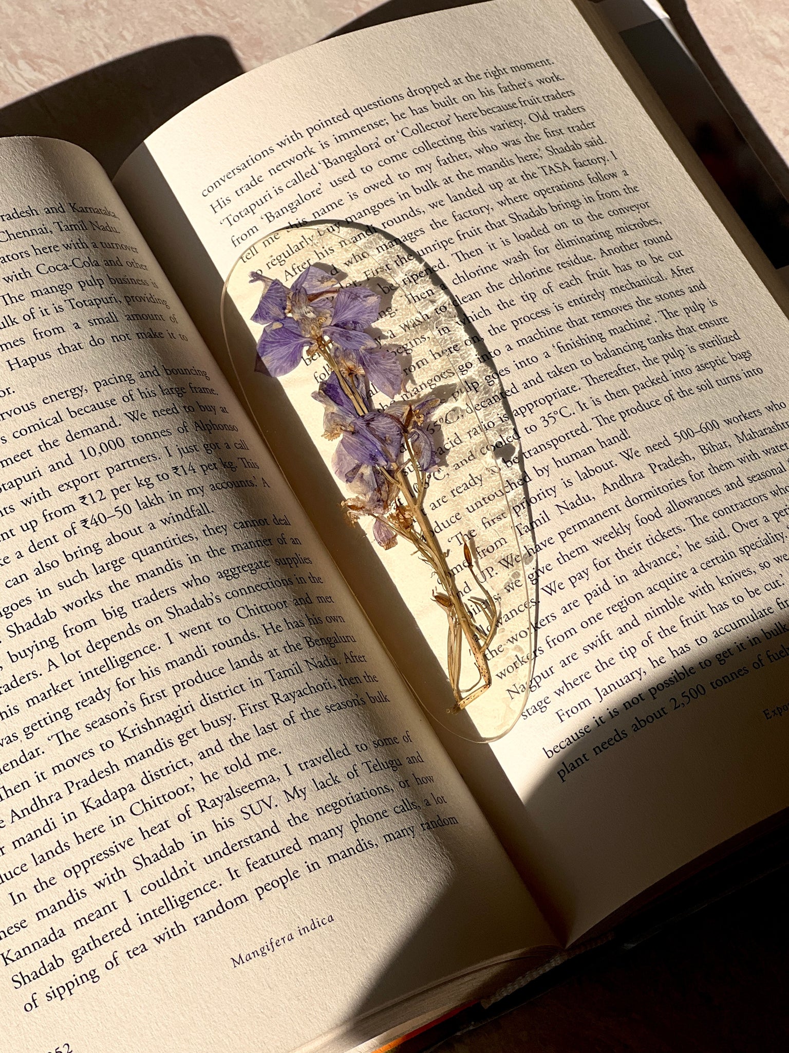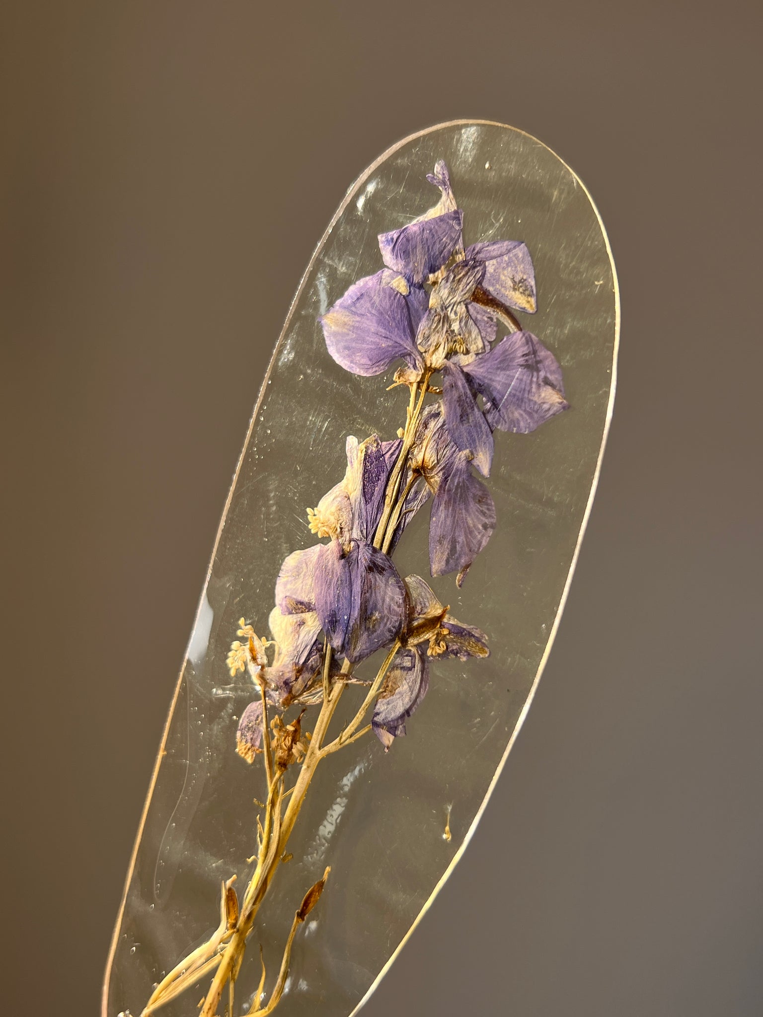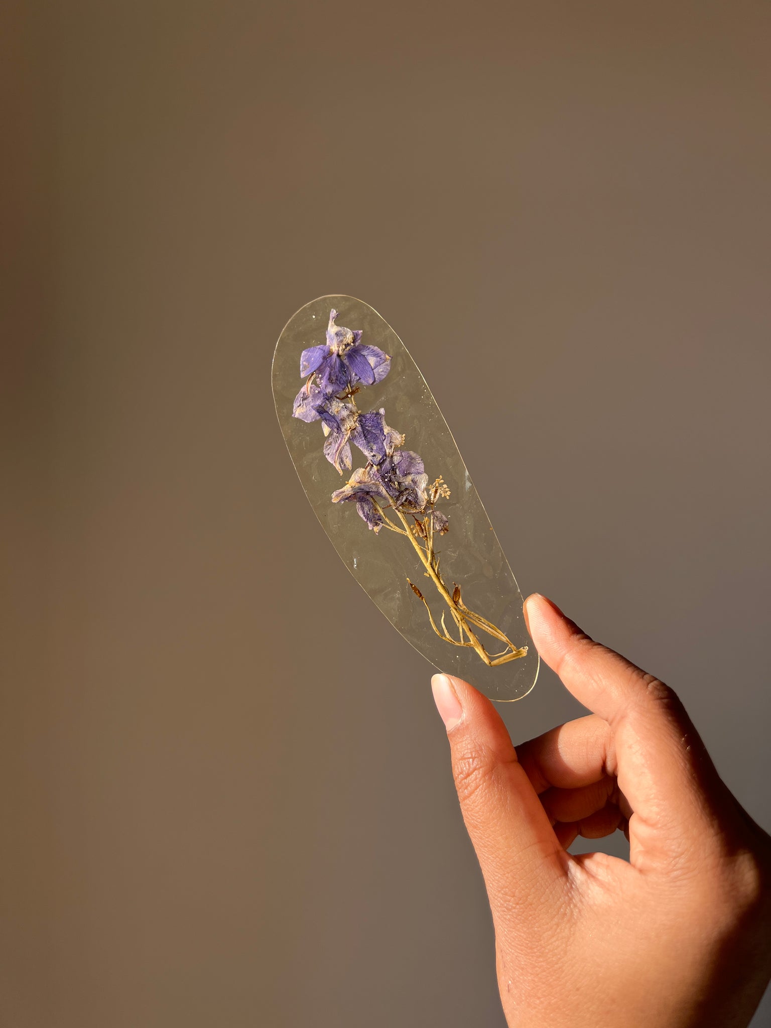 Handcrafted Resin Bookmark with Real Pressed Larkspur Flowers