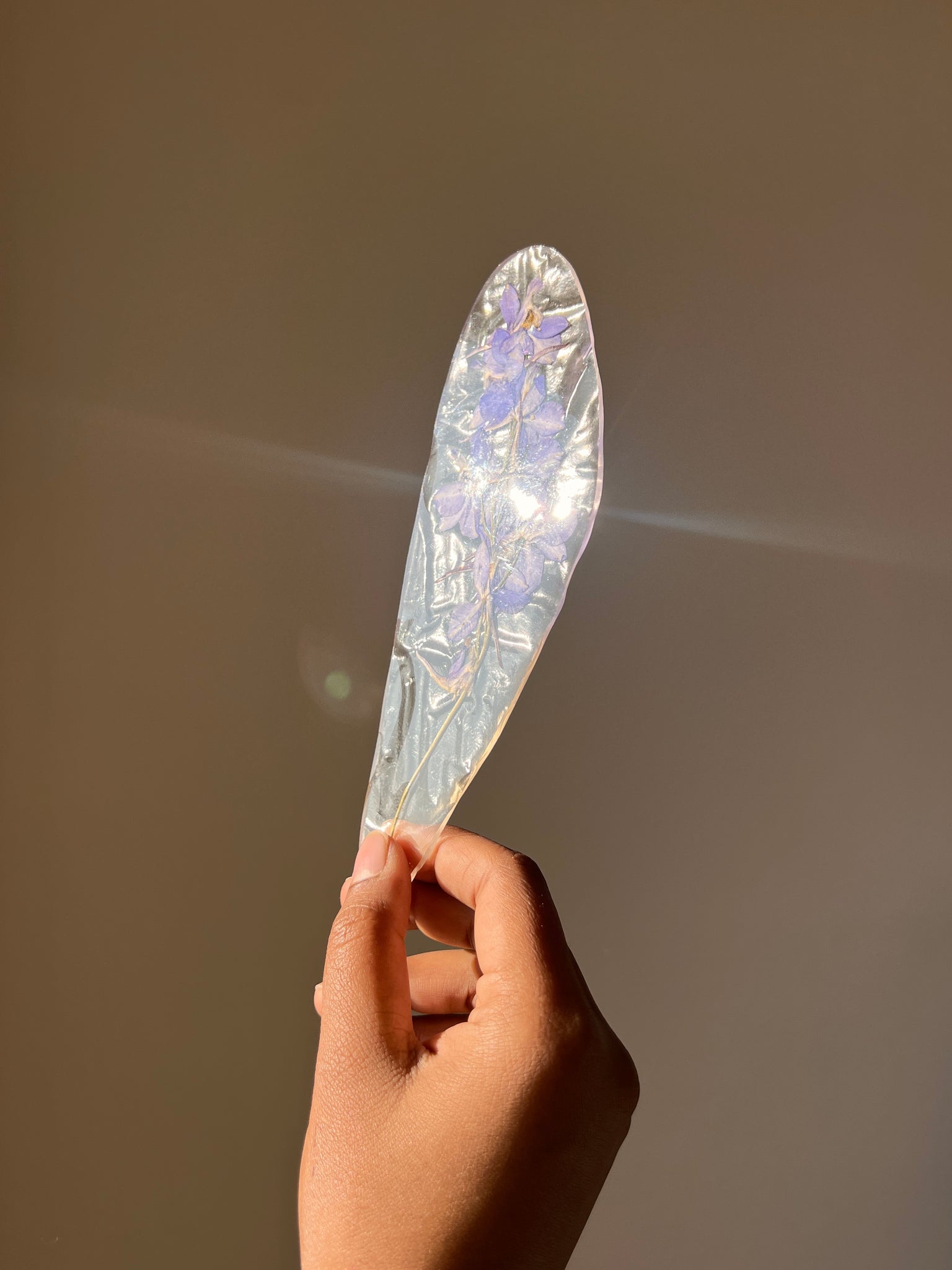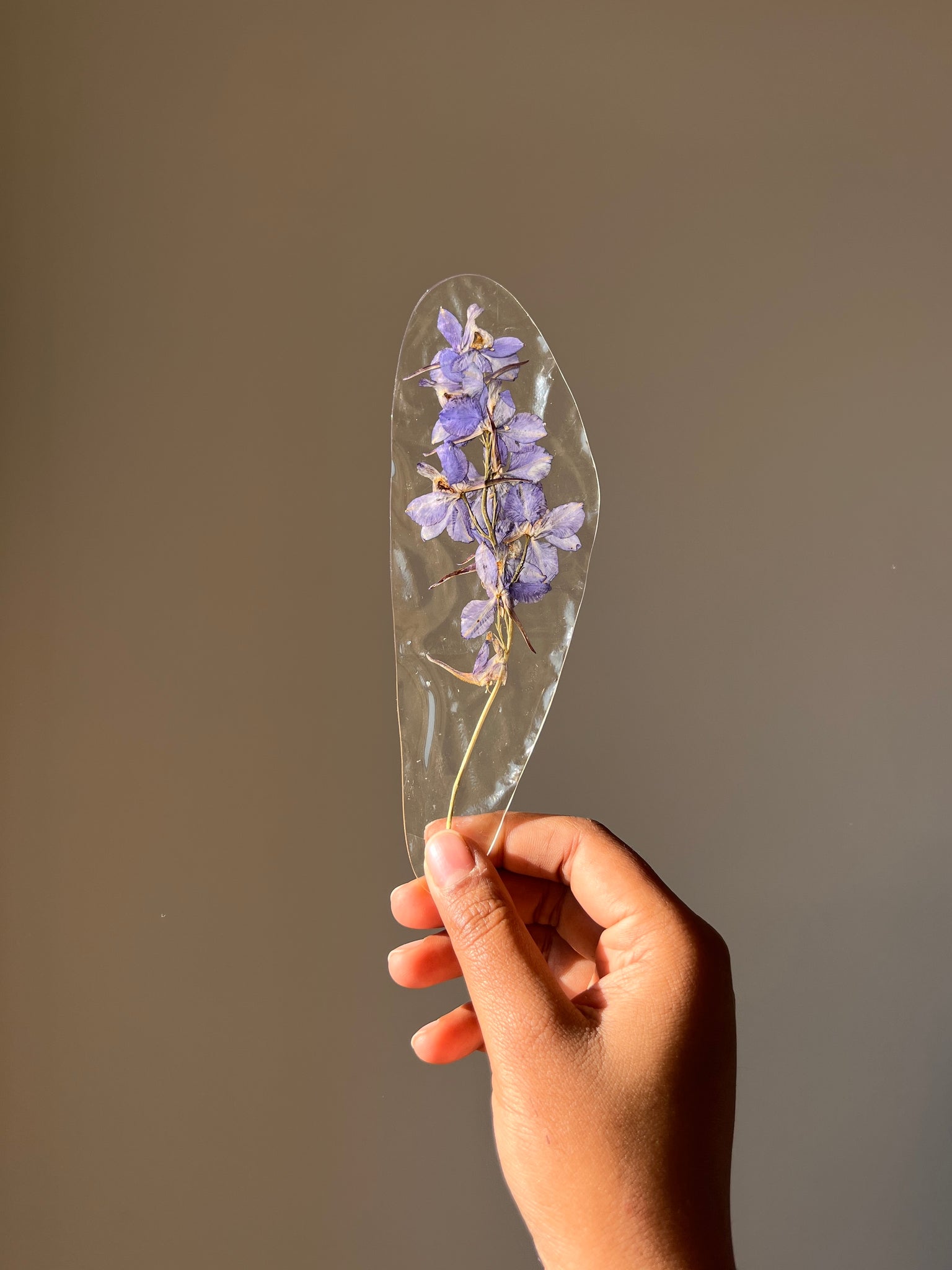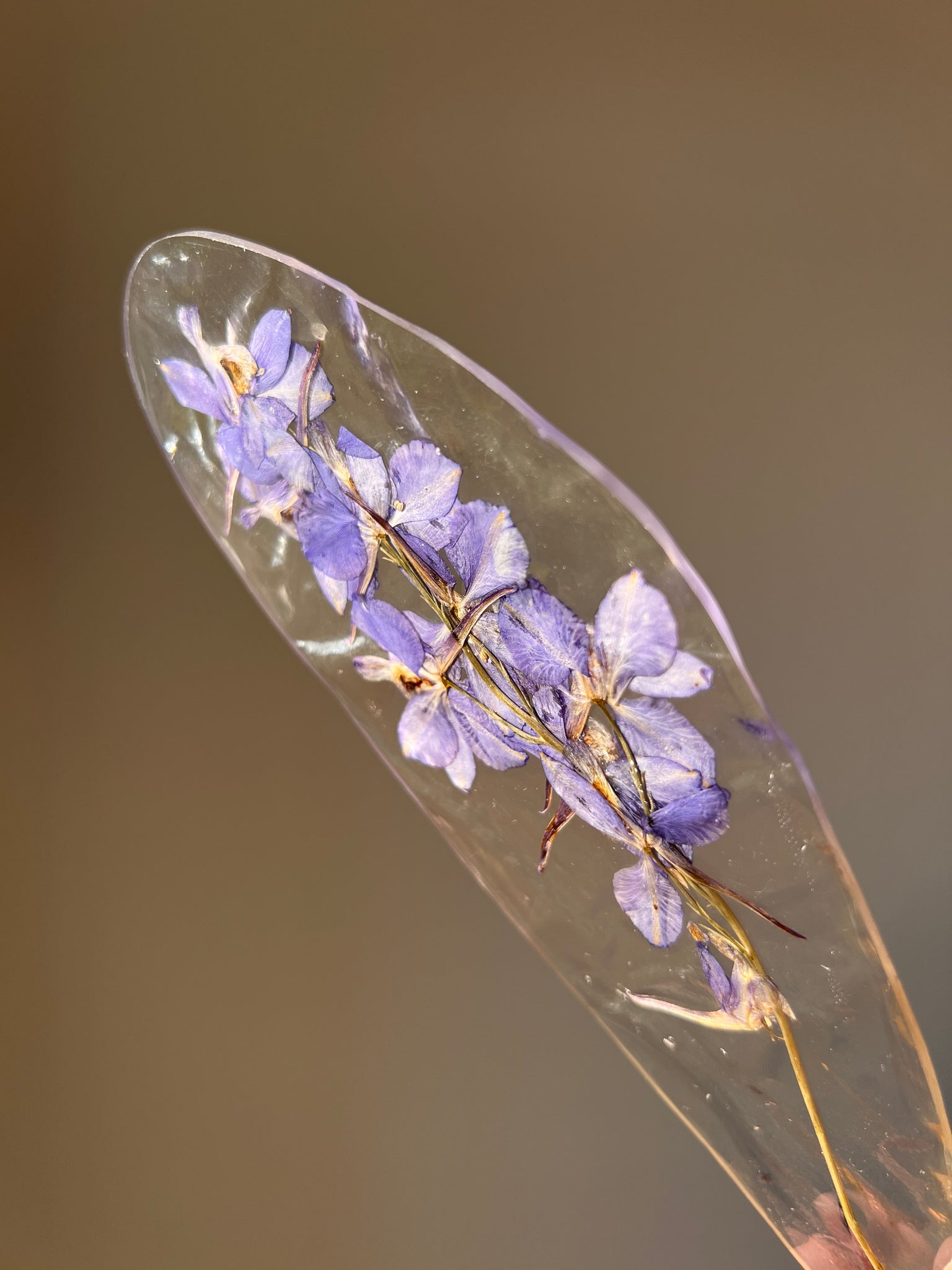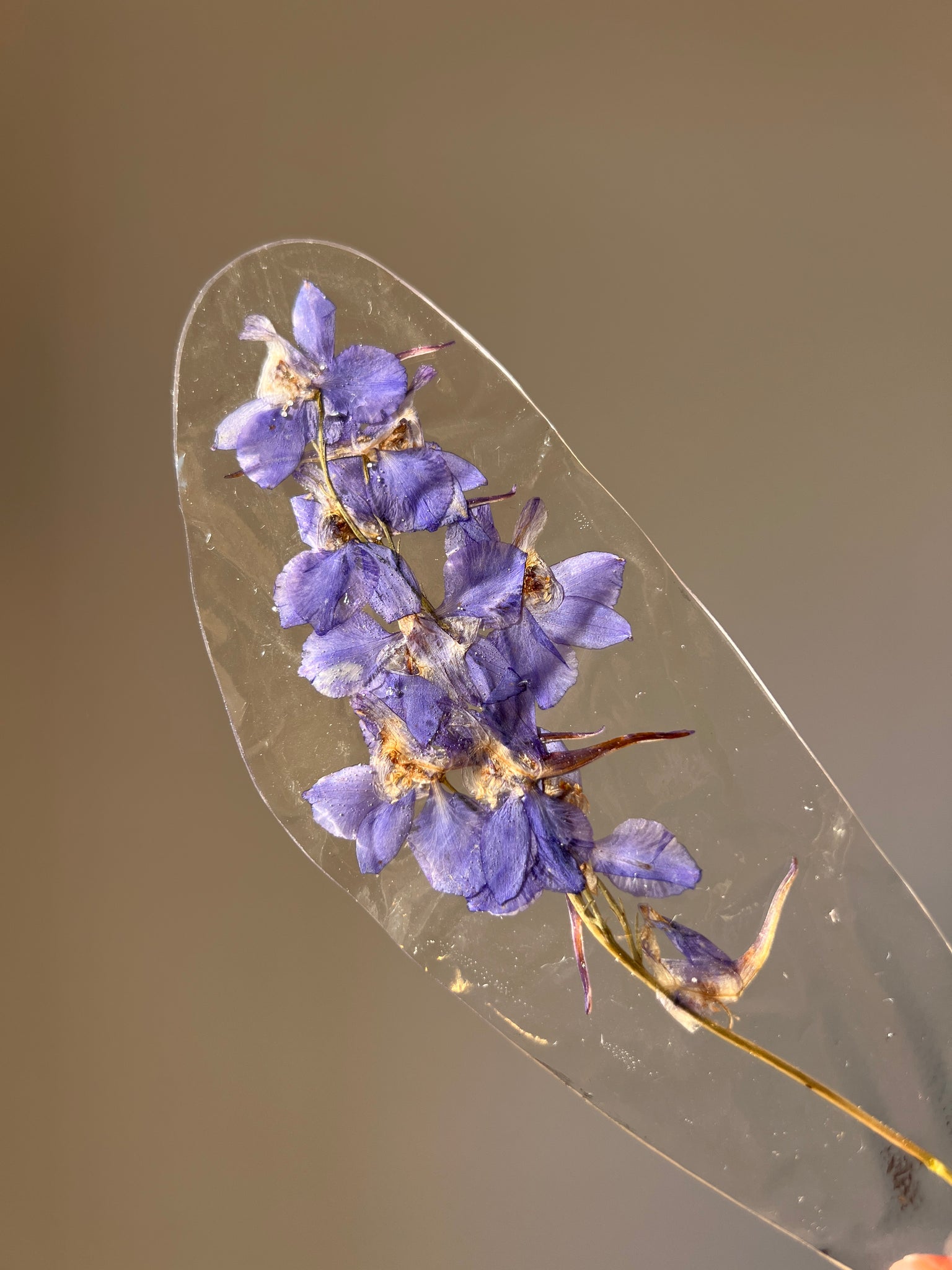 Handcrafted Resin Bookmark with Real Pressed Larkspur Flowers