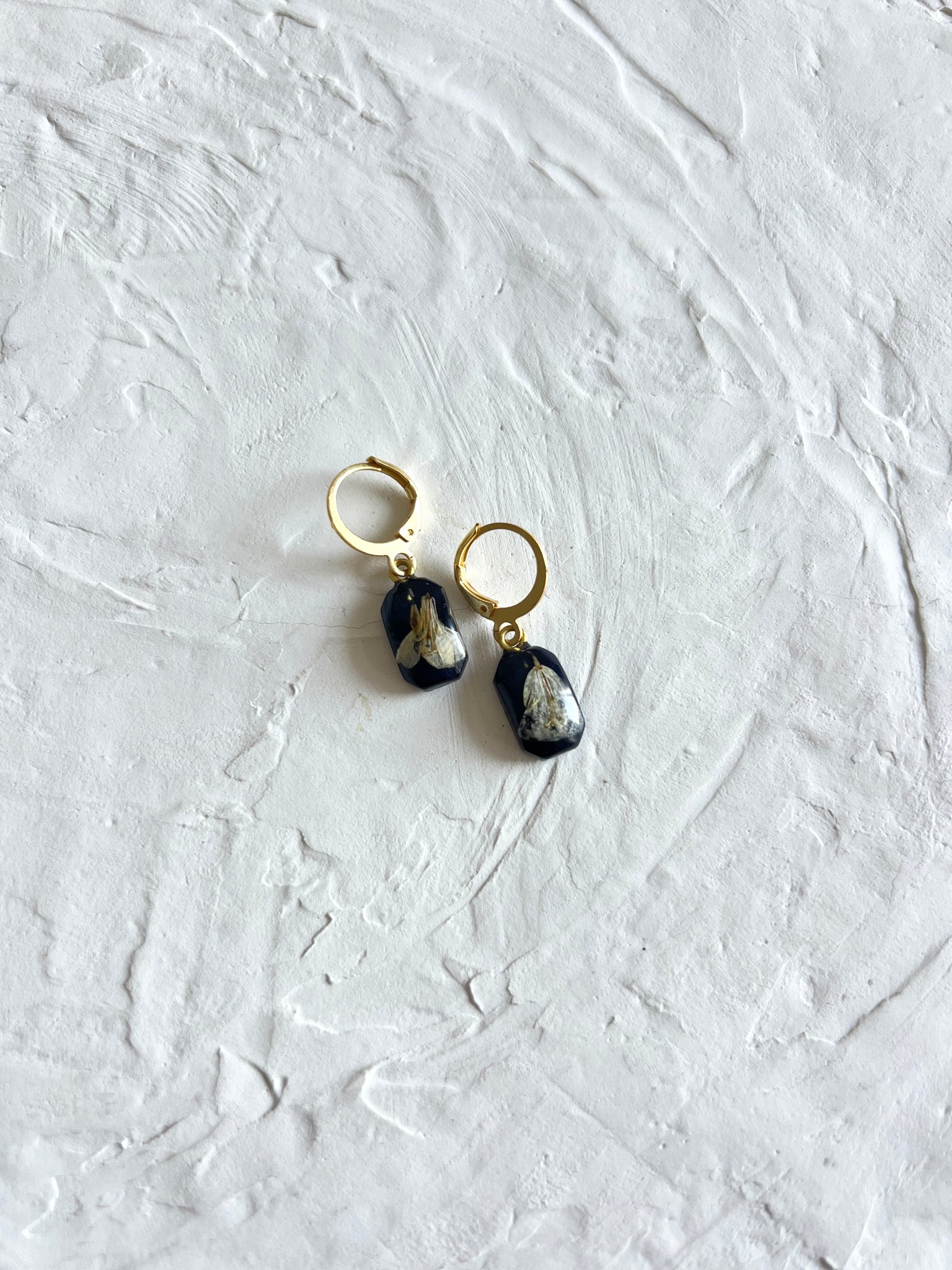 Sarso / Mustard Flower Huggie Earrings (Black) -4