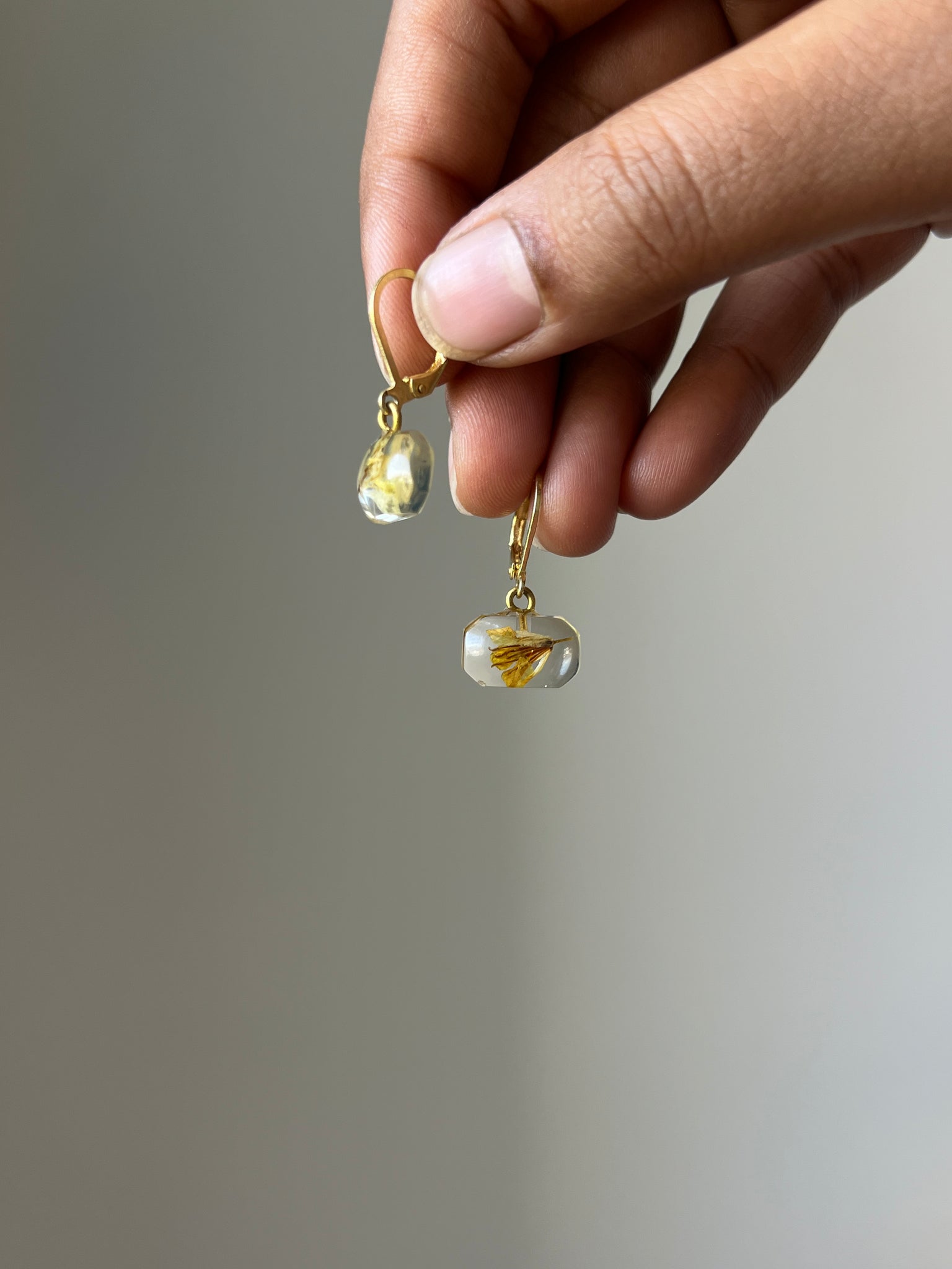 • Load image into Gallery viewer, Sarso / Mustard Flower Huggie Earrings (Clear) -1