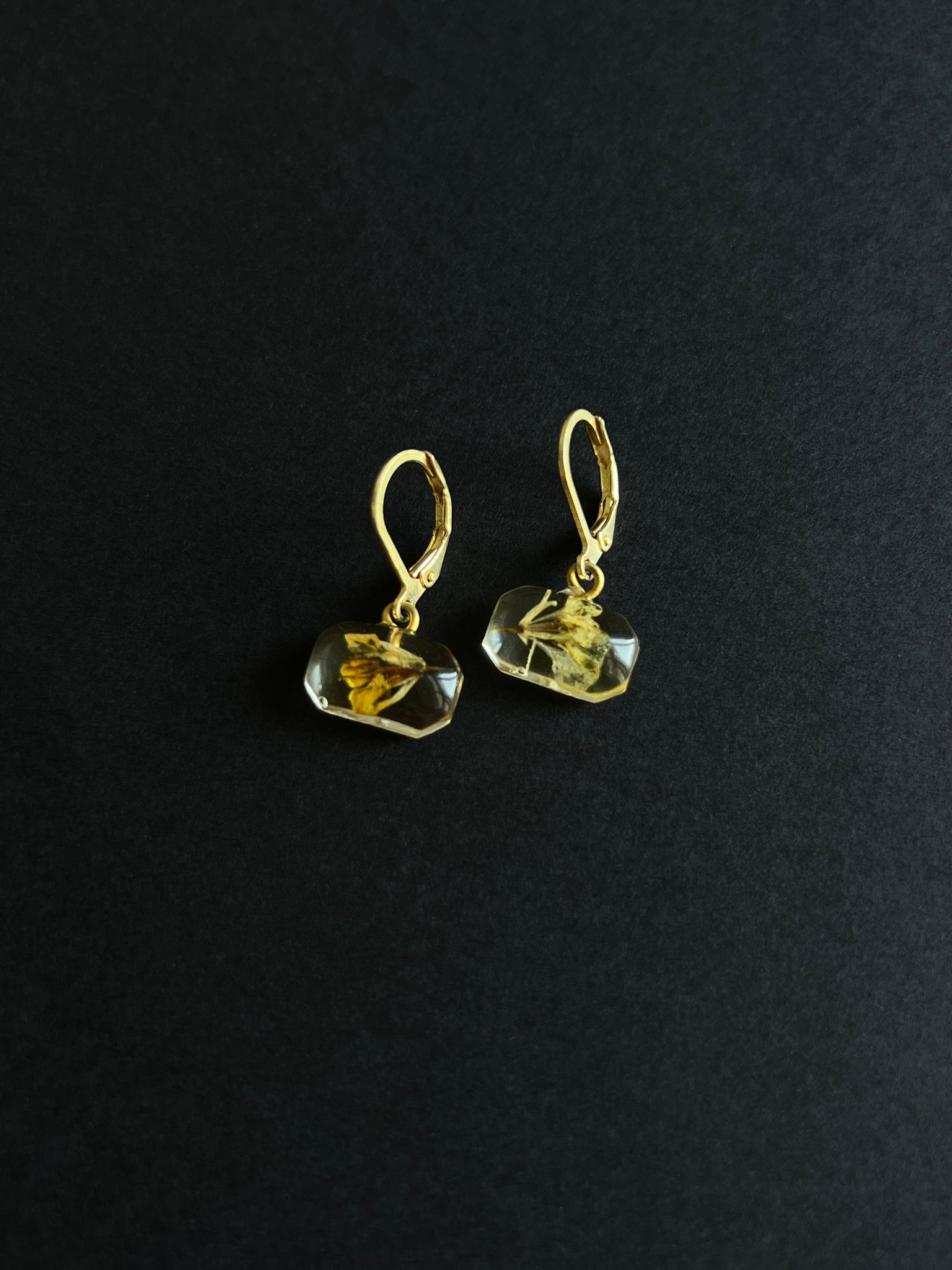 Sarso / Mustard Flower Huggie Earrings (Clear) -1